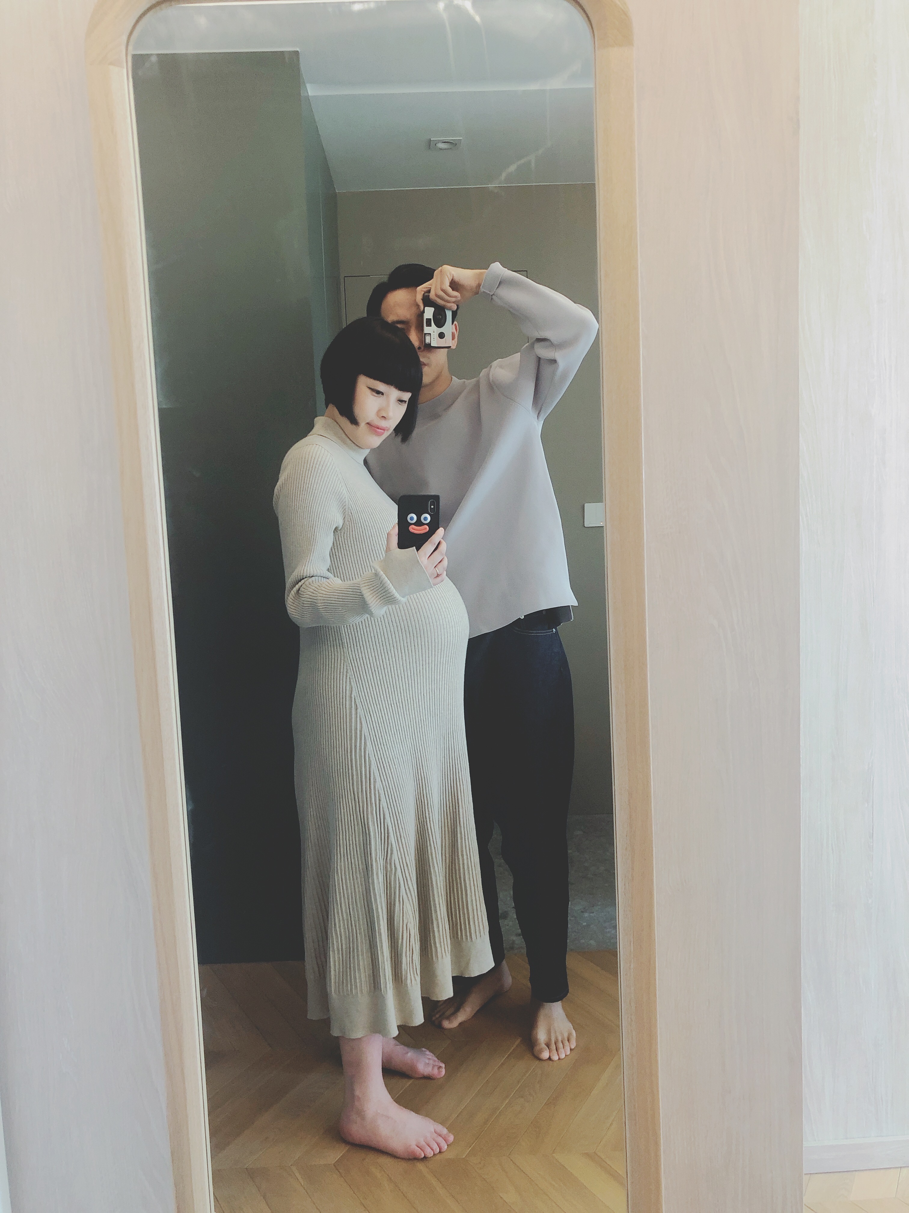 阿仔係38週5出世,重量7磅7,算中大碼B,當時醫生見到我個肚都叫我陣間要大力 push佢出黎,我嘅身形比例同個肚真係爭太遠,而家睇番大肚相都驚嘆人體奧妙,個肚竟然可以拉到咁大!!??講番先,我整個孕期重咗26磅,食得唔多因為個肚陀好高頂住個胃,我又無食花膠谷大佢,但佢都成7磅7,只可以話佢好吸收⋯⋯